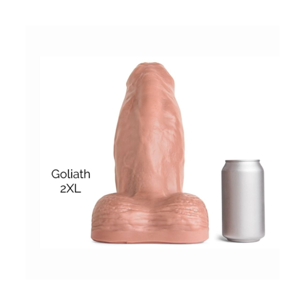 Dildo GOLIATH od Hankey’s Toys zdecydowanie nie jest zabawką dla początkujących. GOLIATH to jak dotąd największe Hankey’s Toy! Twoja dziura zostanie rozciągnięta do maksimum, ponieważ otworzy się szeroko na tego niegrzecznego chłopca. Ze względu na swój rozmiar twoja dziura otworzy się nie tylko szeroko, ale także głęboko. GOLIATH ma nieobrzezany żołądź oraz stosunkowo gładką powierzchnię z realistycznym wzorem żył i dołączonymi jądrami. Czy jesteś wystarczająco męski, aby przyjąć GOLIATHA?